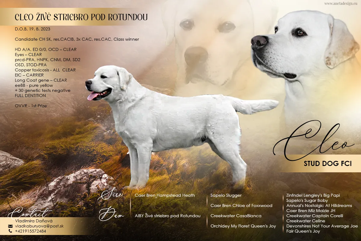Cleo je chovný pes využiteľný pre uchovnené sučky pod FCI a žije v Topoľčanoch so svojou skvelou rodinou Vlaďka Daňová a Štefan Daňo. Je poslušný, dobrý a vyrovnaný, miluje deti aj spoločnosť, je priateľský k ostatným psom a je skutočným miláčikom rodiny. Navyše je to krásny a mohutný pes.